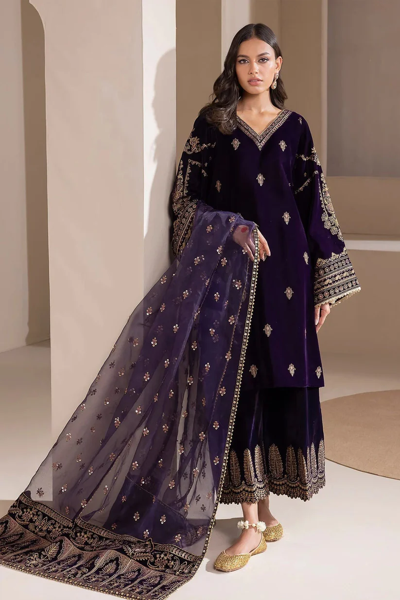 • Winter Unstitched 3PCs Velvet Embroidered Dress