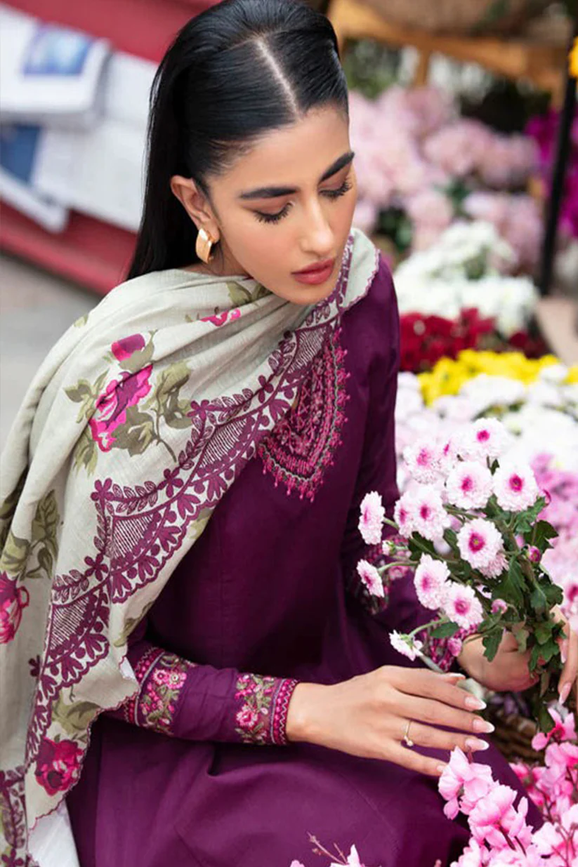KN581-WINTER 3PC Dhanak Embroidered suit with Printed Shawll