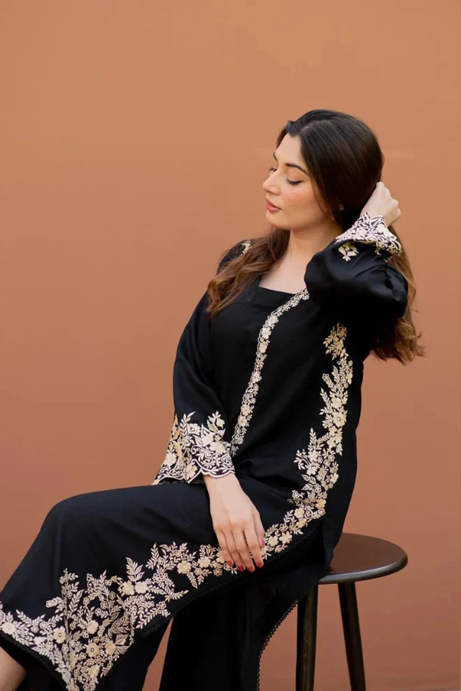 Shirt: Embroidered Dhanak Front Shirt Embroidered Dhanak Sleeves Dyed Dhanak Airjet Backside Fabric: Dhanak